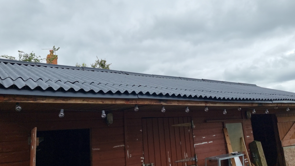 The Onduline sheets were quite difficult to move around due to their size, but that was the only real issue and we found them very easy to attach and they have definitely improved the look of the roof as can be seen in the picture below